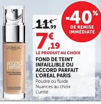 Offre L'oreal paris fond de teint infaillible ou accord parfait chez Hyper U