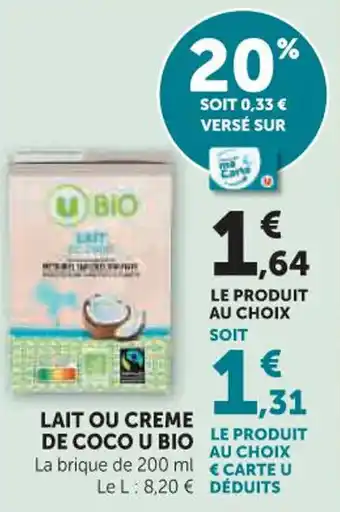 Lait ou creme coco u bio : offres et promos Hyper U à découvrir