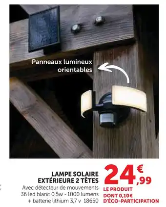 Lampe solaire extérieure 2 têtes : offres et promos Hyper U à découvrir