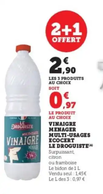 Le prix de l'offre LE DROGUISTE Vinaigre menager multi-usages ecocert se trouve également en haut de la page, ainsi que la date à laquelle l'offre est disponible. Vous pouvez également vérifier les prix dans le Catalogue Hyper U actuel ou sur le site Internet de Hyper U. Les offres vous permettent d'acheter les produits Hyper U au prix le plus bas.