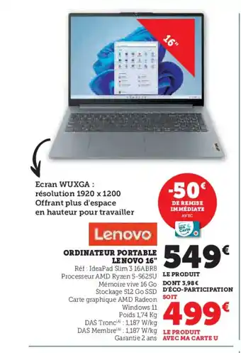 Actuellement en offre chez Hyper U : LENOVO Ordinateur portable ✅ Valable du 20-01 au 8-02.