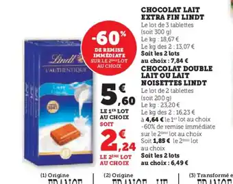 LINDT Chocolat lait extra : offres et promos Hyper U à découvrir