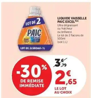 Actuellement en offre chez Hyper U : LIQUIDE VAISSELLE PAIC EXCEL ✅ Valable du 24-03 au 6-04.
