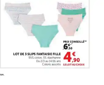 Lot de 3 slips fantaisie fille : offres et promos Hyper U à découvrir
