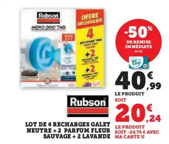 Actuellement en offre chez Hyper U : RUBSON Lot de 4 recharges galet neutre +2 parfum fleur sauvage +2 lavande ✅ Valable du 6-01 au 18-01.