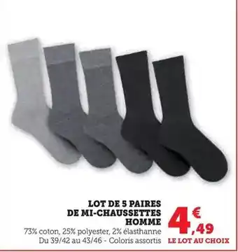 Actuellement en offre chez Hyper U : Lot de 5 paires de mi-chaussettes homme ✅ Valable du 27-01 au 8-02.