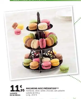 En plus de l'offre Macarons avec présentoir, Hyper U propose une large gamme de produits. Consultez le Catalogue Hyper U hebdomadaire pour découvrir les meilleures offres et promotions. En plus de Macarons avec présentoir, il y a aussi : Macarons présentoir tour eiffel, Macarons & 6 Macarons.