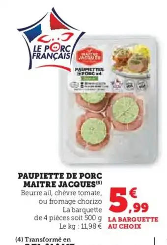 MAITRE JACQUES Paupiette de porc offres et promotions en ligne chez Hyper U