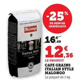 Malongo - cafe grains italian style : offres et promos Hyper U à découvrir