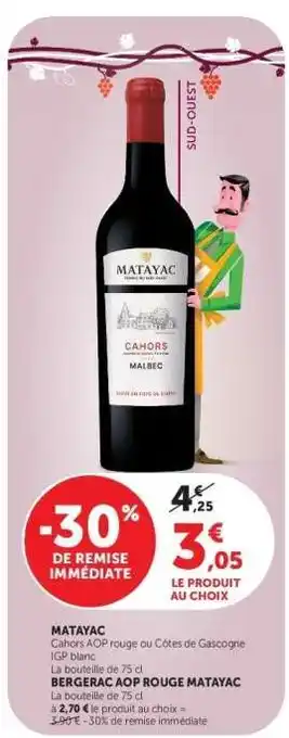 En plus de l'offre MATAYAC, Hyper U propose une large gamme de produits. Consultez le Catalogue Hyper U hebdomadaire pour découvrir les meilleures offres et promotions. En plus de MATAYAC, il y a aussi : MATAYAC, Matayac & A.O.P. Cahors MATAYAC.