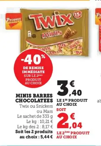 En plus de l'offre Minis barres chocolatees, Hyper U propose une large gamme de produits. Consultez le Catalogue Hyper U hebdomadaire pour découvrir les meilleures offres et promotions. En plus de Minis barres chocolatees, il y a aussi : Minis barres chocolatees, Minis barres chocolatees & Twix - minis barres chocolatees.