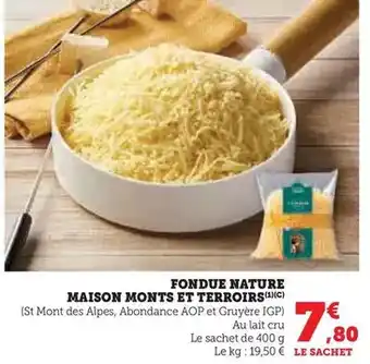 Actuellement en offre chez Hyper U : Monts et terroirs - fondue nature maison ✅ Valable du 20-01 au 1-02.