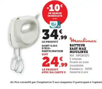 Offre MOULINEX Batteur easy max chez Hyper U