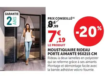 En plus de l'offre Moustiquaire rideau porte aimante 95x215 cm, Hyper U propose une large gamme de produits. Consultez le Catalogue Hyper U hebdomadaire pour découvrir les meilleures offres et promotions. En plus de Moustiquaire rideau porte aimante 95x215 cm, il y a aussi : MOUSTIQUAIRE EN RIDEAU, Moustiquaire de porte & Rideau moustiquaire magnétique.