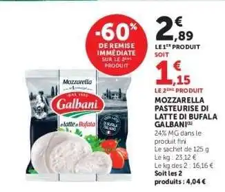 Offre MOZZARELLA PASTEURISÉE DI LATTE DI BUFALA GALBANI chez Hyper U