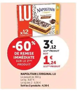 Le prix de l'offre Napolitain L'original Lu se trouve également en haut de la page, ainsi que la date à laquelle l'offre est disponible. Vous pouvez également vérifier les prix dans le Catalogue Hyper U actuel ou sur le site Internet de Hyper U. Les offres vous permettent d'acheter les produits Hyper U au prix le plus bas.