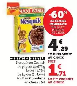 Le prix de l'offre Nestlé - cereales se trouve également en haut de la page, ainsi que la date à laquelle l'offre est disponible. Vous pouvez également vérifier les prix dans le Catalogue Hyper U actuel ou sur le site Internet de Hyper U. Les offres vous permettent d'acheter les produits Hyper U au prix le plus bas.