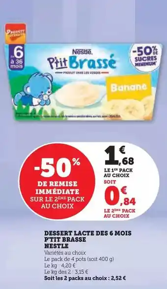 Offre Nestlé - dessert lacte des 6 mois p'tit brasse chez Hyper U