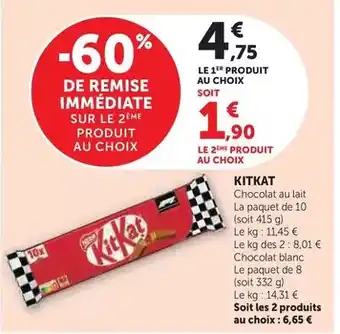 Le prix de l'offre Nestlé - kit kat se trouve également en haut de la page, ainsi que la date à laquelle l'offre est disponible. Vous pouvez également vérifier les prix dans le Catalogue Hyper U actuel ou sur le site Internet de Hyper U. Les offres vous permettent d'acheter les produits Hyper U au prix le plus bas.