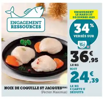 Actuellement en offre chez Hyper U : Noix de coquille st jacques ✅ Valable du 17-12 au 24-12.