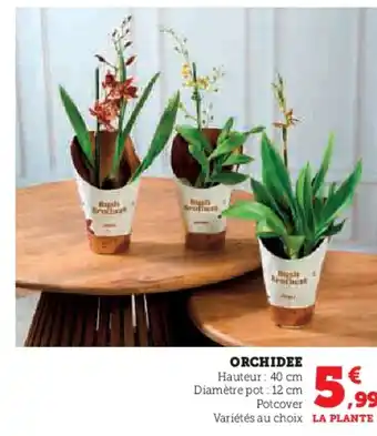 Actuellement, Orchidee est en promotion chez Hyper U. Toutes les informations utiles comme le prix, les conditions et la durée de validité sont affichées sur cette page. Consultez également les promotions similaires pour Orchidee, afin de faire le meilleur choix. La promo Orchidee est valable du 27-01-2026 au 08-02-2026. Si elle est expirée, regardez les autres offres équivalentes. Vous pouvez aussi suivre cette catégorie de produit pour être alerté lorsqu’une nouvelle promotion Orchidee apparaît chez Hyper U.Questions fréquemment posées au sujet de Orchidee