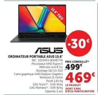 ORDINATEUR PORTABLE ASUS 15.6” offres et promotions en ligne chez Hyper U