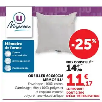 Oreiller memofill : offres et promos Hyper U à découvrir