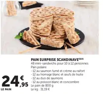 L'offre est disponible dans plusieurs magasins, vérifiez tous les produits pour obtenir le Pain surprise scandinave le moins cher. Si vous souhaitez savoir si l'article est en vente avec une plus grosse remise dans un autre magasin, consultez la catégorie 'Supermarché'. Ces offres pourraient aussi vous intéresser : Pain surprise scandinave, Pain surprise coffre & Pain surprise gourmand.