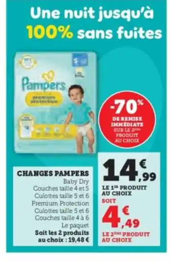 En plus de l'offre PAMPERS Changesa, Hyper U propose une large gamme de produits. Consultez le Catalogue Hyper U hebdomadaire pour découvrir les meilleures offres et promotions. En plus de PAMPERS Changesa, il y a aussi : Pampers culottes duo pack, PAMPERS Culotts duo pack & PAMPERS Couches Maxi Pack.