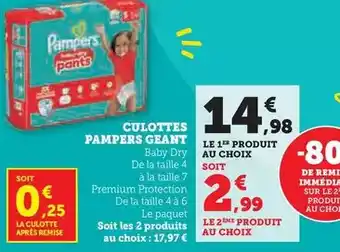 Pampers - culottes geant : offres et promos Hyper U à découvrir