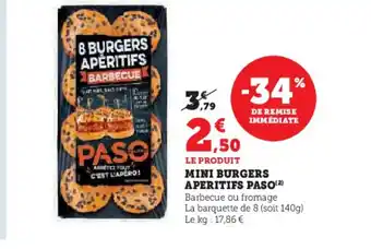 En plus de l'offre PASO Mini burgers aperitifs, Hyper U propose une large gamme de produits. Consultez le Catalogue Hyper U hebdomadaire pour découvrir les meilleures offres et promotions. En plus de PASO Mini burgers aperitifs, il y a aussi : Burgers apéritifs cheese et saumon, Paso traiteur burgers apéritif cheese & Burgers apéritif cheese paso traiteur.