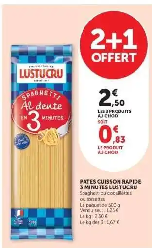 Actuellement en offre chez Hyper U : Pâtes Cuisson Rapide 3 Minutes Lustucru ✅ Valable du 14-04 au 26-04.