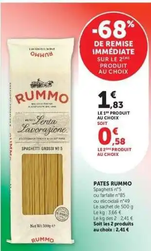 Actuellement en offre chez Hyper U : Pâtes Rummo ✅ Valable du 21-04 au 3-05.