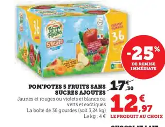 En plus de l'offre POM'POTES 5 Fruits sans sucres ajoutes, Hyper U propose une large gamme de produits. Consultez le Catalogue Hyper U hebdomadaire pour découvrir les meilleures offres et promotions. En plus de POM'POTES 5 Fruits sans sucres ajoutes, il y a aussi : POM'POTES 5 Fruits sans sucres ajoutes, Pom'potes 5 fruits sans sucres ajoutes & MATERNE Pom'potes sans sucres ajoutes.
