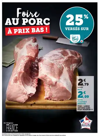 Actuellement en offre chez Hyper U : Porc: longe entière sans filet mignon ✅ Valable du 13-01 au 18-01.
