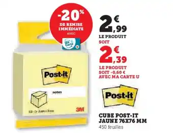 Actuellement en offre chez Hyper U : POST-IT Cube jaune 76x76 mm ✅ Valable du 6-01 au 18-01.