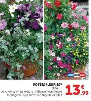 Quand POTÉES FLEURIES sera-t-elle en promotion ? Ou encore : "Est-ce que POTÉES FLEURIES sera en promotion la semaine prochaine ?" C’est une question fréquente. Beaucoup de consommateurs établissent leur liste de courses à l’avance. Pour cette raison, nous mettons en ligne les informations sur les promos à venir dès qu’elles sont connues. Cela vous permet de planifier vos achats et de faire de bonnes affaires. Consultez régulièrement notre site pour savoir si une nouvelle promo sur POTÉES FLEURIES arrive bientôt chez Hyper U.Questions fréquemment posées au sujet de POTÉES FLEURIES