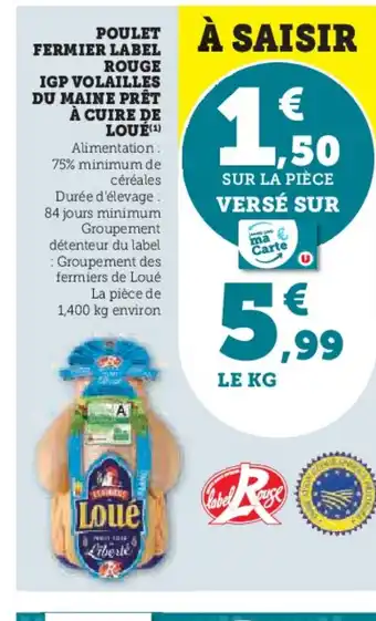 Actuellement en offre chez Hyper U : Poulet fermier label rouge igp volailles du maine prêt à cuire de loué ✅ Valable du 27-01 au 8-02.