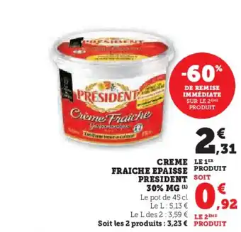 En plus de l'offre PRESIDENT Creme fraiche epaisse, Hyper U propose une large gamme de produits. Consultez le Catalogue Hyper U hebdomadaire pour découvrir les meilleures offres et promotions. En plus de PRESIDENT Creme fraiche epaisse, il y a aussi : PRESIDENT Creme fraiche epaisse, President crème fraîche épaisse 30% mg & Président - creme fraiche epaisse 30% mg.