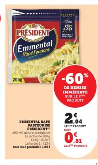 Actuellement en offre chez Hyper U : PRESIDENT Emmental rape pasteurise ✅ Valable du 20-01 au 1-02.