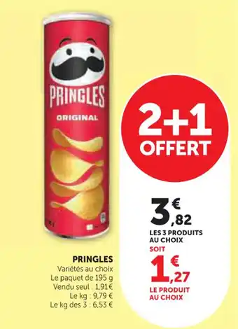 Pringles bénéficie actuellement d'une réduction chez Hyper U. Vous trouverez ici toutes les infos utiles sur les prix, la durée de validité et les conditions de l’offre. Pensez à consulter aussi d'autres offres et promotions similaires pour Pringles afin d’acheter toujours au bon prix. La promo Pringles est valable du 24-02-2026 au 08-03-2026. Offre terminée ? Pas de souci. D'autres offres sur ces produits sont peut-être déjà disponibles. Vous pouvez suivre cette catégorie de produits pour rester informé en cas de nouvelle promotion Pringles chez Hyper U. En comparant les offres, vous êtes sûr d’acheter au prix le plus bas possible.Questions fréquemment posées au sujet de Pringles