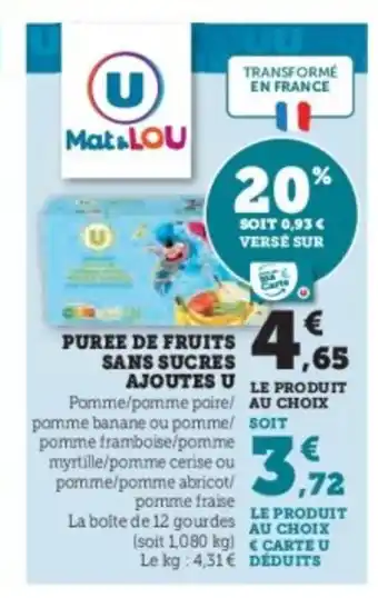 Puree de fruits sans sucres ajoutes u offres et promotions en ligne chez Hyper U