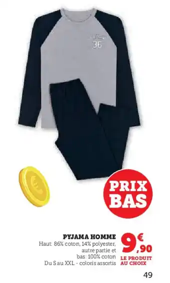 L'offre est disponible dans plusieurs magasins, vérifiez tous les produits pour obtenir le Pyjama homme le moins cher. Si vous souhaitez savoir si l'article est en vente avec une plus grosse remise dans un autre magasin, consultez la catégorie 'Supermarché'. Ces offres pourraient aussi vous intéresser : Pyjama homme, Pyjama homme & Pyjama long homme.