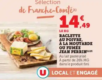 Actuellement en offre chez Hyper U : Raclette au poivre, à la moutarde ou fumée jean perrin ✅ Valable du 3-02 au 15-02.