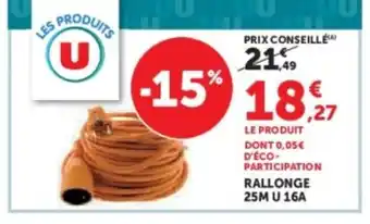 En plus de l'offre Rallonge, Hyper U propose une large gamme de produits. Consultez le Catalogue Hyper U hebdomadaire pour découvrir les meilleures offres et promotions. En plus de Rallonge, il y a aussi : Rallonge 25m u 16a, Rallonge pare-soleil & U rallonge 25m u 16a.