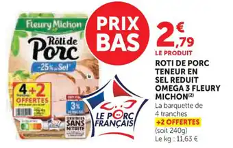 Actuellement en offre chez Hyper U : Roti de porc teneur en sel reduit omega 3 fleury michon ✅ Valable du 24-02 au 8-03.