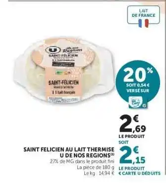 Saint Felicien au Lait Thermisé U de Nos Regions offres et promotions en ligne chez Hyper U
