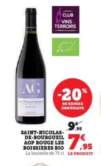 Actuellement en offre chez Hyper U : Saint-nicolas- de-bourgueil aop rouge les boissieres bio ✅ Valable du 27-12 au 4-01.