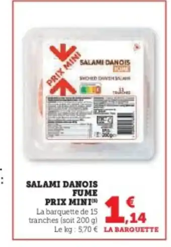 Actuellement en offre chez Hyper U : Salami danois fume prix minis ✅ Valable du 27-12 au 4-01.