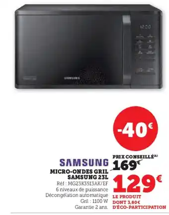 Actuellement en offre chez Hyper U : SAMSUNG Micro ondes gril ✅ Valable du 20-01 au 8-02.